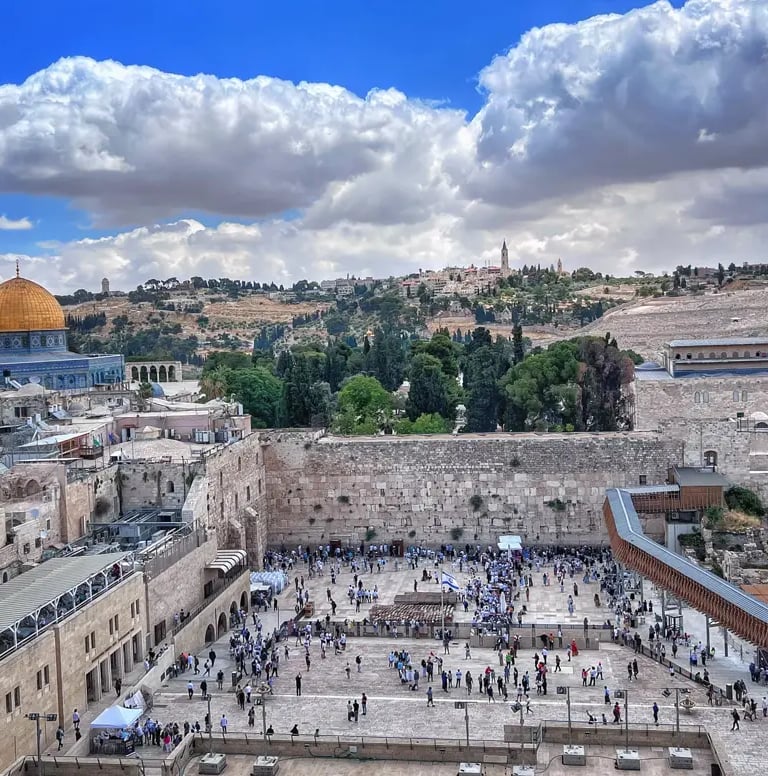 Begin the day by visiting the Wailing Wall, also known as the Western Wall, a significant section of the western retaining wall of the Temple Mount and the most sacred site in Judaism. Explore the Western Wall Tunnels to marvel at the massive stones that once made up the western exterior retaining wall of the Temple. Later, head to the Mount of Olives, where Jesus is believed to have taught His disciples the Lord’s Prayer and ascended to heaven. Take in the breathtaking panoramic view of Jerusalem, walk along the Palm Sunday path, and pause at Dominus Flevit, where Jesus wept over the city. Continue to the Jewish cemetery overlooking the Eastern (Golden) Gate, also known as the Thrones of Judgment according to Psalm 122. Climb Mount Zion to visit the Cenacle, which commemorates the Upper Room where Jesus shared the Last Supper with His disciples, and see King David’s Tomb. Enjoy lunch (please take care of your own meal). In the afternoon, explore the Old City of Jerusalem, passing through the Armenian Quarter into the Jewish Quarter. Discover the Roman Cardo, King Hezekiah's broad wall, the Hurva Synagogue, and the Golden Menorah. Conclude the day at the Southern steps, retracing the footsteps of Jesus and standing where He likely taught, as well as where Peter delivered his sermon after Pentecost.